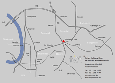 Meine Praxis liegt im Zooviertel von Düsseldorf – die Straßenbahnhaltestelle »Lindemannstraße« befindet sich unmittelbar vor dem Gebäude (Linien-Nr. 703, 706, 712, 713).